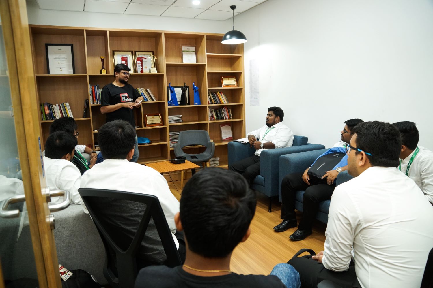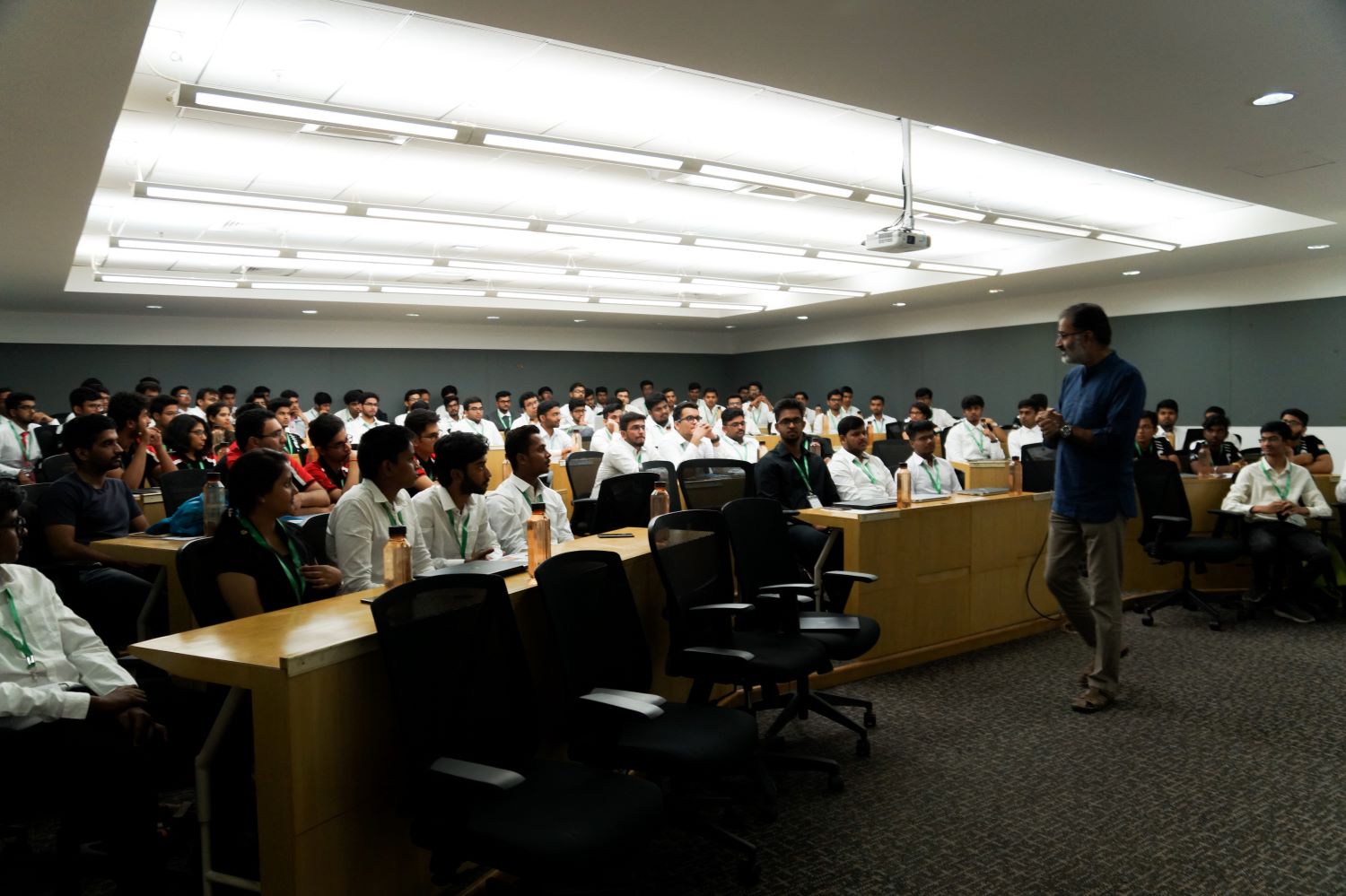 Sirish Batchu, VP of Digital Technology at Ather Energy, delivers a presentation on the Role of Software in EVs to the participants at FSEV 2019 at the Ather Energy HQ in Bengaluru
